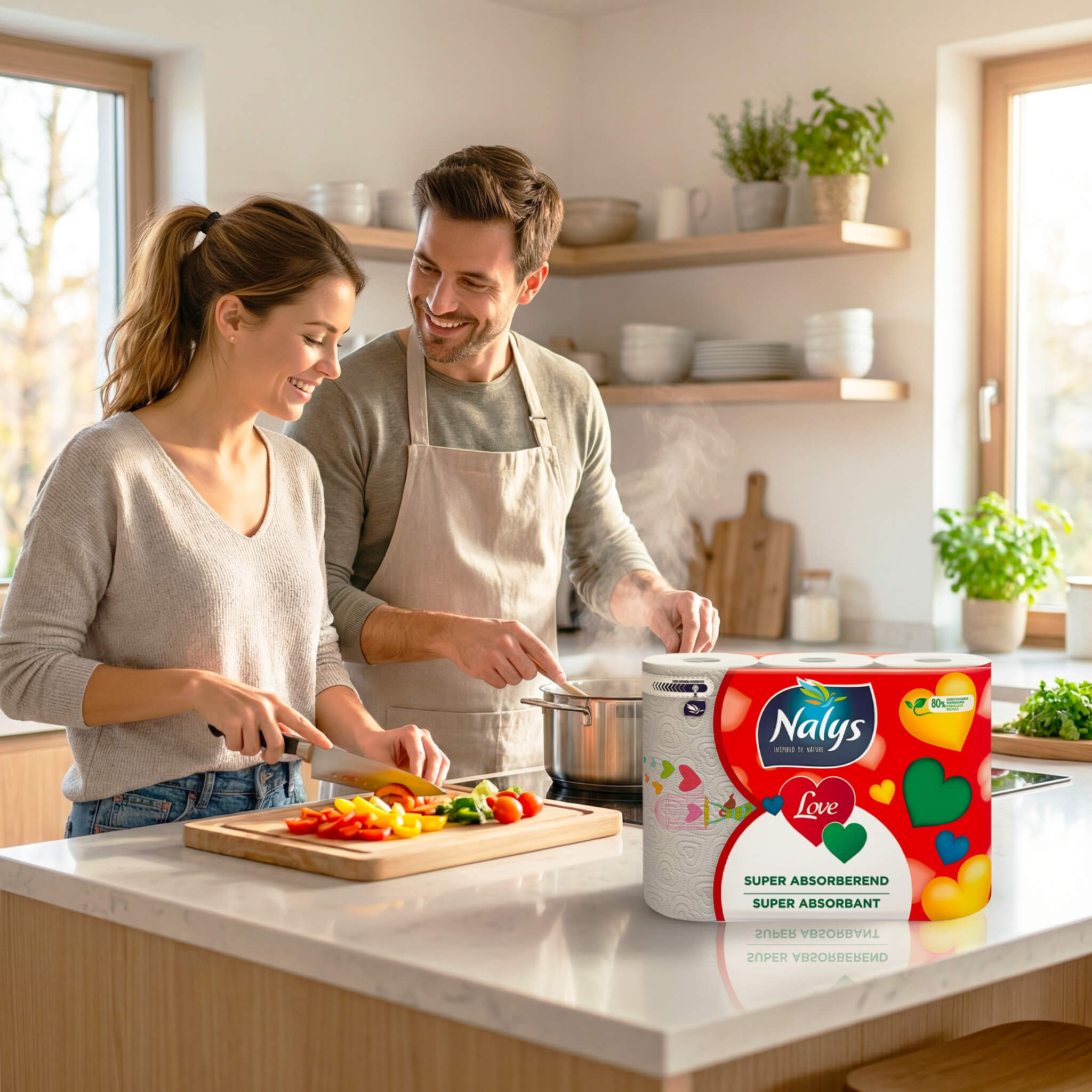 Breng liefde in je keuken met Nalys Love. De vellen zijn versierd met een hartvormig reliëf en decoraties geïnspireerd door de liefde. Door de 3 lagen zorgen deze vellen voor een maximale sterkte en absorptie. Het product bestaat uit 100% zuivere cellulosewatten en is geschikt voor contact met voedingsmiddelen.